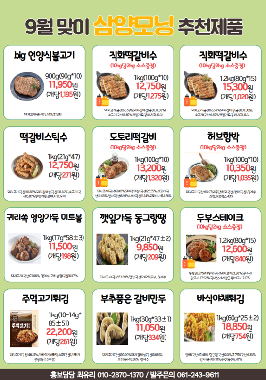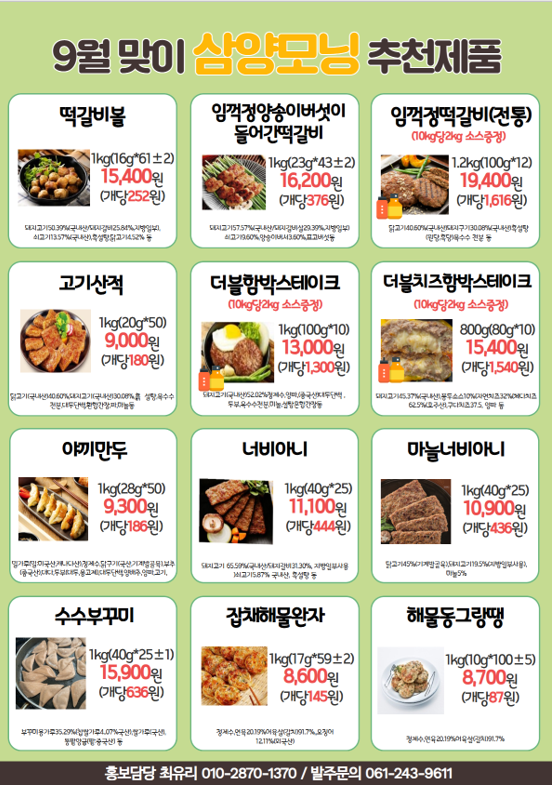 [동원에프엔에프] 삼양모닝 9월 단가표