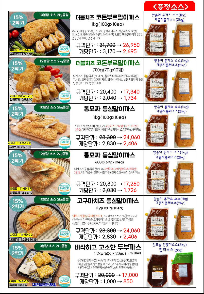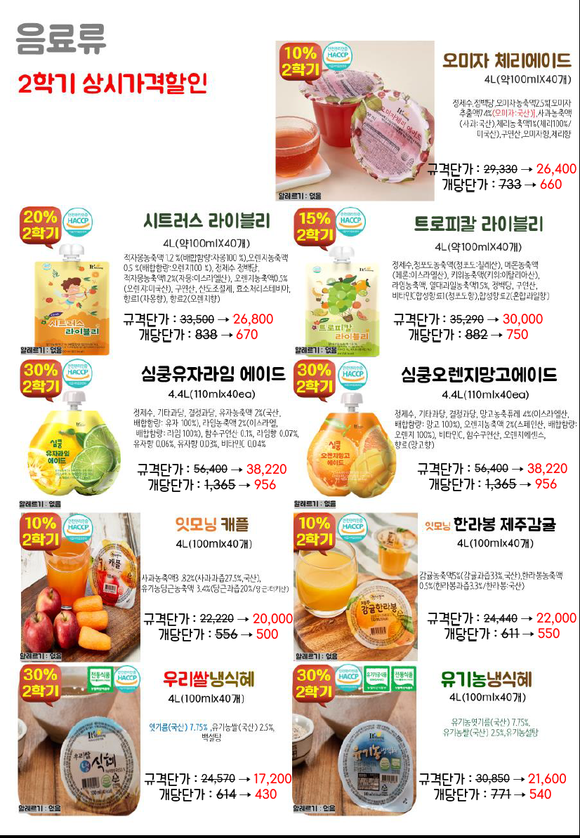 신제품 및 할인행사 많이하오니 단가표 참고하시기 바랍니다..^^