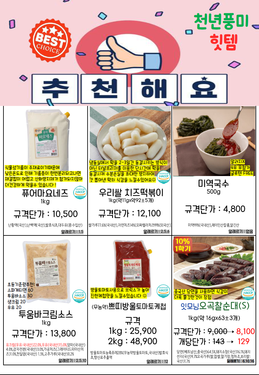제품문의: 도래샘푸드 576-8007 / 정현화팀장 010-5133-0798