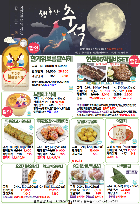 [동원에프엔에프] 삼양모닝 10월 단가표