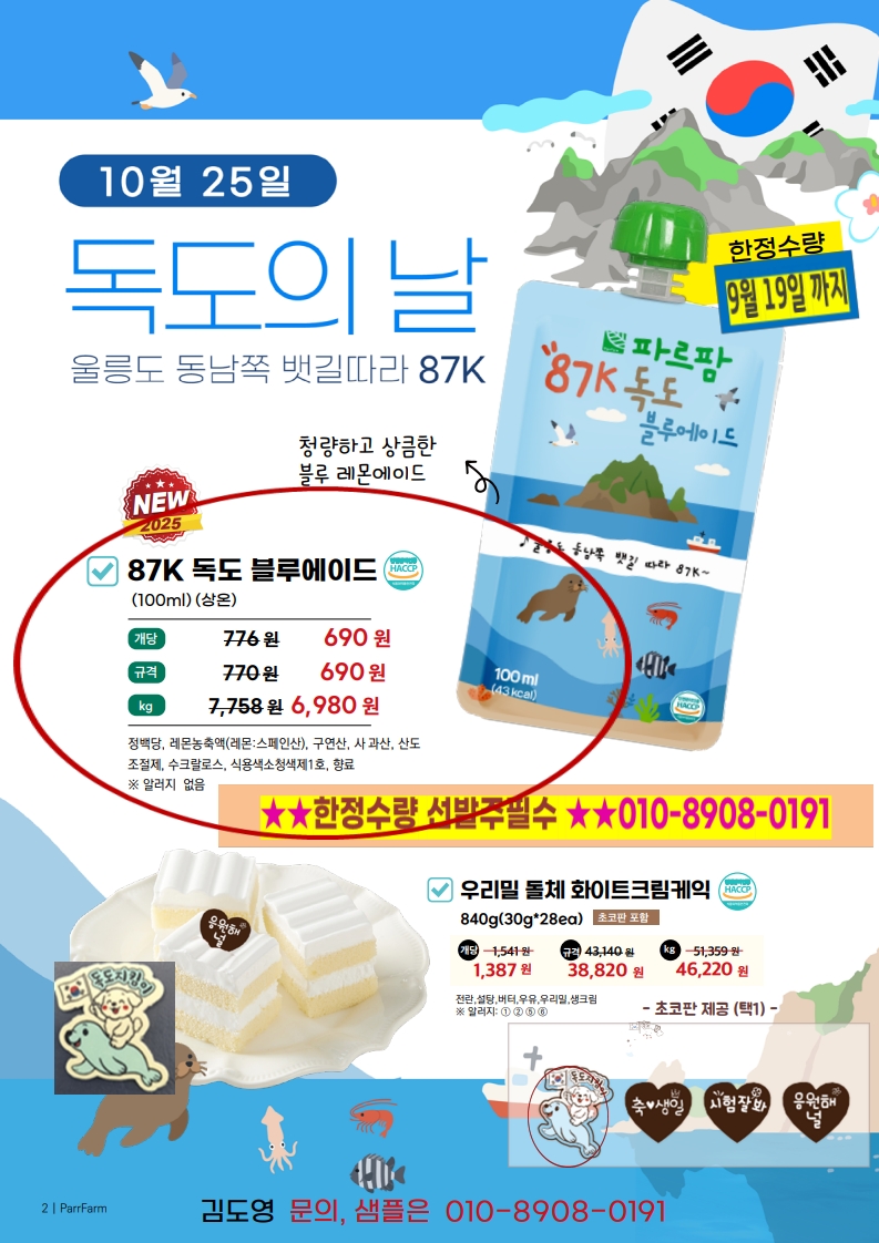 ★☆도래샘==>파르팜 10월~11월 한가위,독도의날, 사과데이,플래터세트,브리또,북경꿔바로우,모찌탕수육,,라떼,에이드,버…