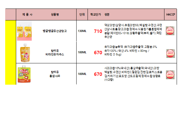 **송곡푸드** 탐미유(워터젤리) 11월 단가입니다