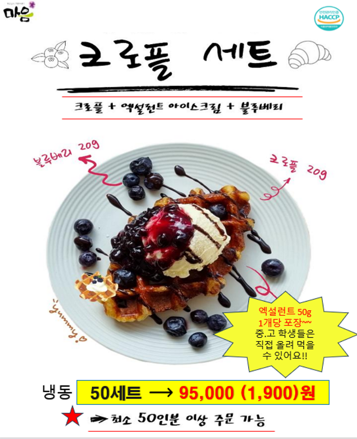 떡갈비, 신의주순대국밥세트, 크로플, 스모어쿠키,사과당근주스, 배주스,