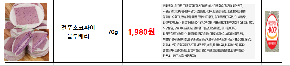 **송곡푸드** 크레드 - 전주초코파이 11월 단가입니다