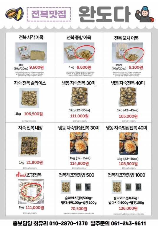 [동원에프엔에프] 완도다(전복) 11월 단가표