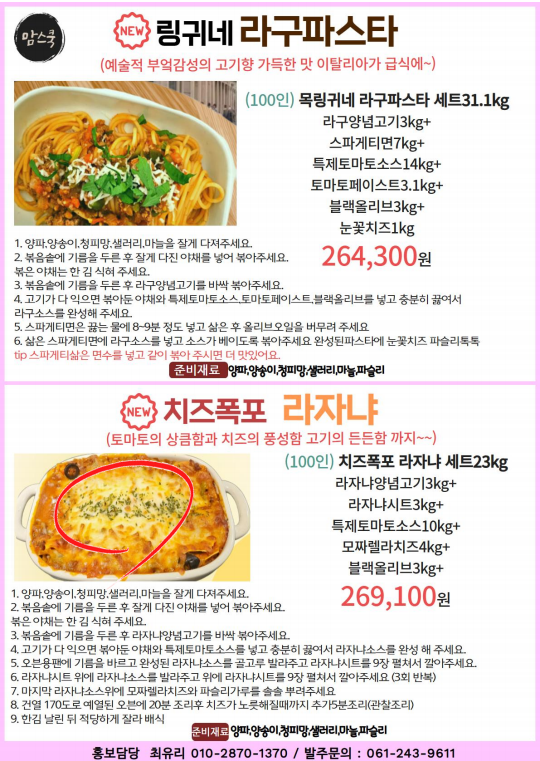 ✿✿[동원에프엔에프]초록푸드&급식대장 11월 단가표✿✿