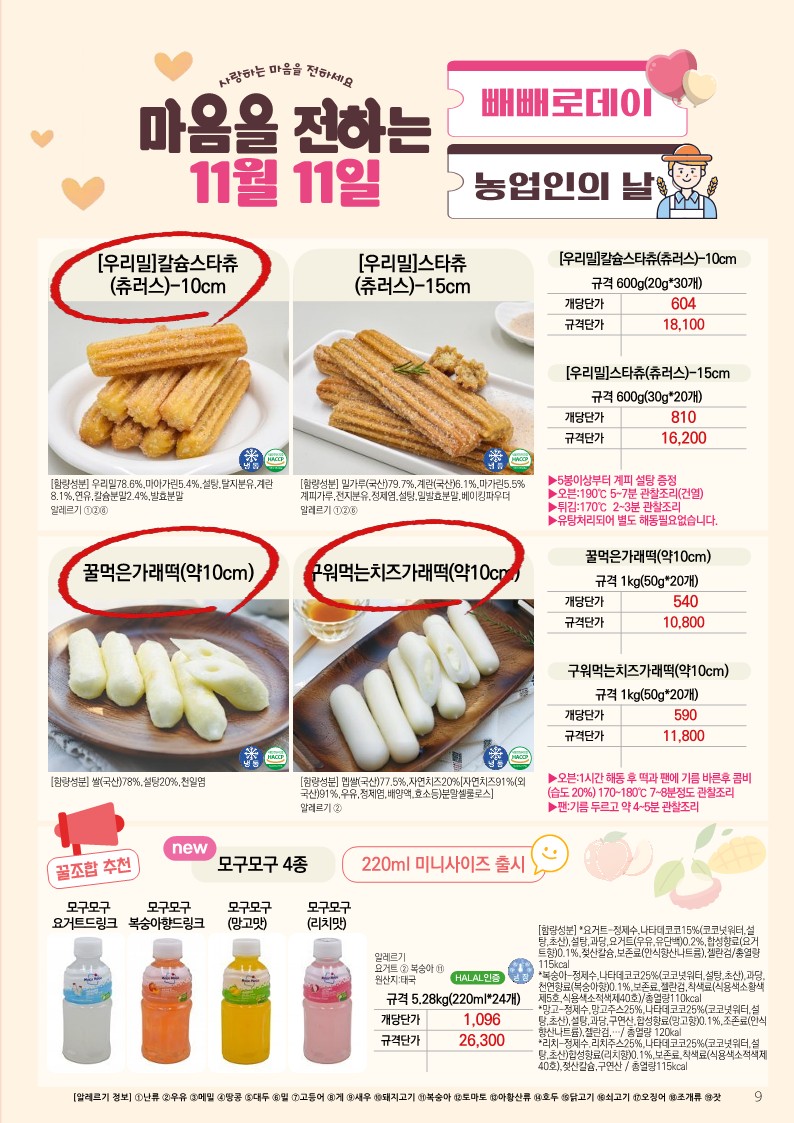✿✿[동원에프엔에프]초록푸드&급식대장 11월 단가표✿✿