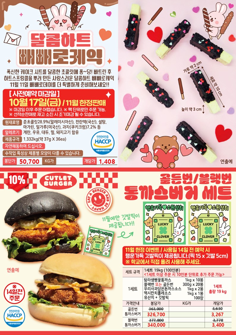 ★★★ 엘푸드 11월 식탁요정 학교 단가표 ★★★★