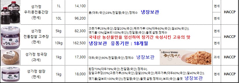 ***SFC푸드맘 순창 "성가정" 11월 단가표입니다(장아찌류,NON GMO 전통장류HACCP인증)***