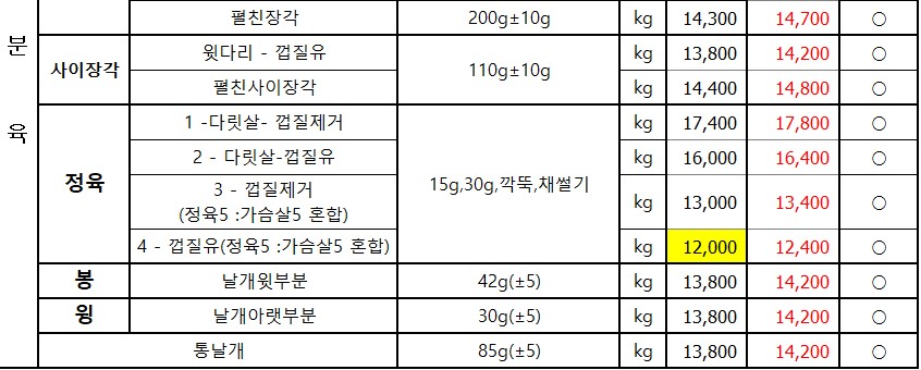 *SFC푸드맘 정닭(정직하고 바른닭) 11월 단가표입니다*