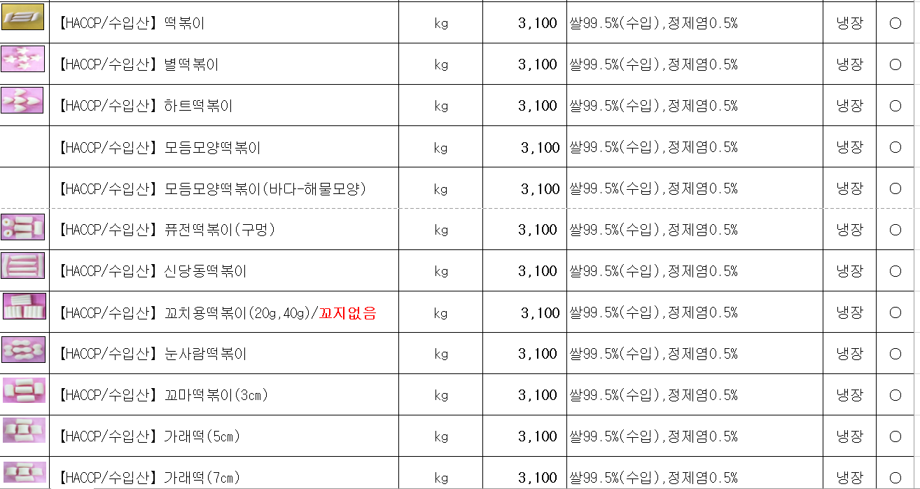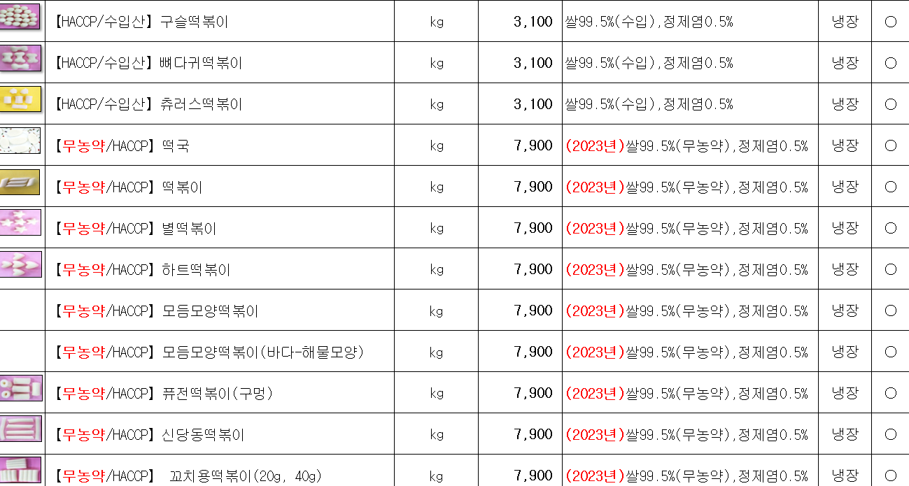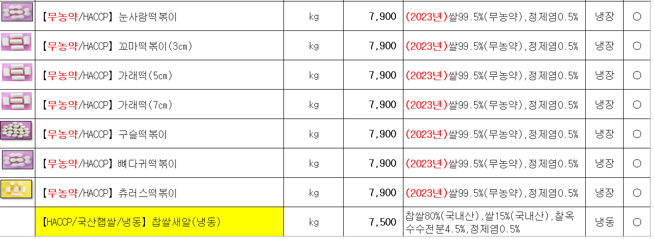 ♡송곡푸드♡「참들애떡- 떡국떡,떡복이떡」12월, 1월 단가표입니다