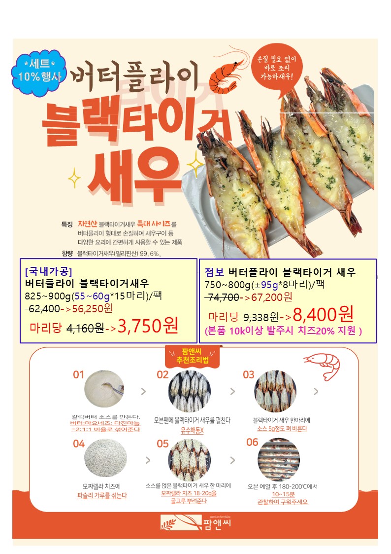 참조은~♠팜앤씨♠[2025년 12월 연말특식제품](간편손질 랍스터,랍스터테일,점보버터플라이블랙타이거새우,버터플라이흰다리새우,버터플라이적새우,연어,장어)
