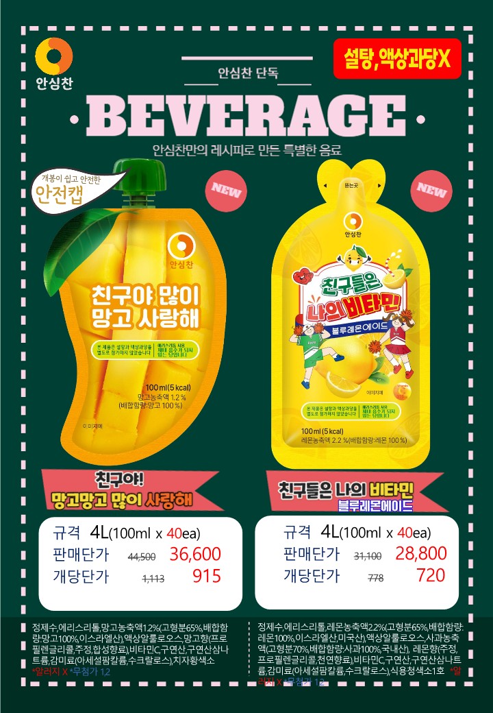 안심찬 단가표를 올려드리오니 맛있는 식단에 참고부탁드립니다!!