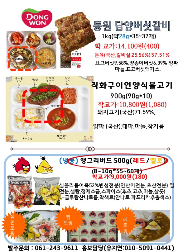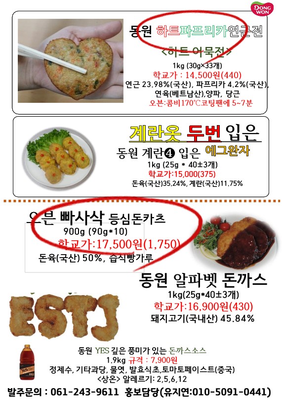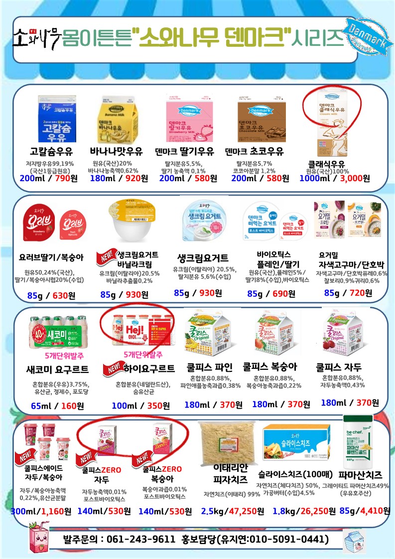 동원F&B,소와나무&덴마크 단가표를 올려드리오니 맛있는 식단에 참고부탁드립니다!!