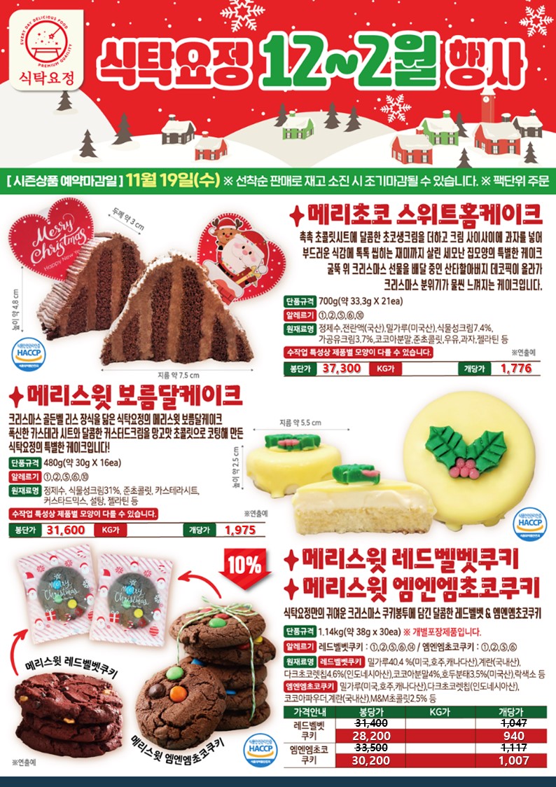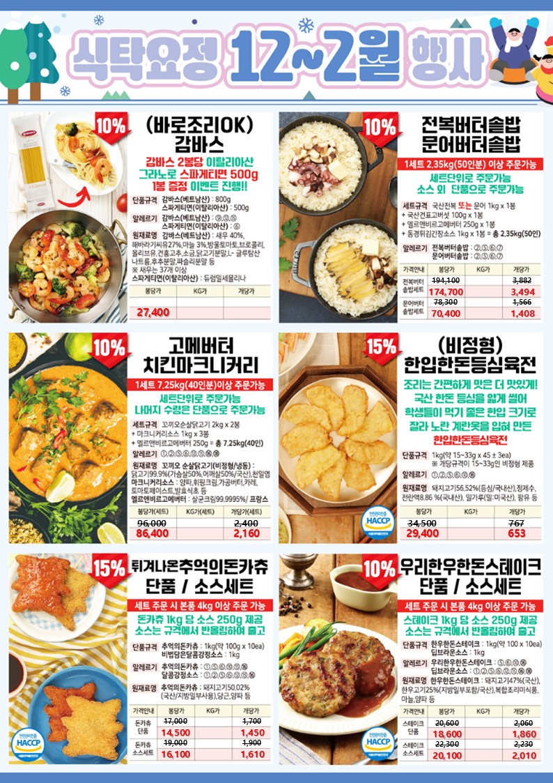 ★★★ 엘푸드 12월~02월 식탁요정 학교 단가표 ★★★★