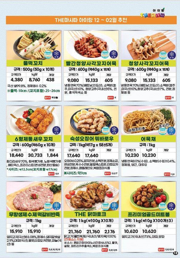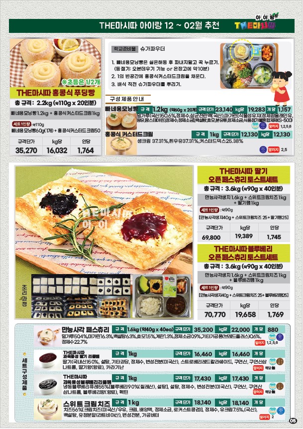 **SFC푸드맘 아이랑 12월 단가표입니다.(추천단가포함)**