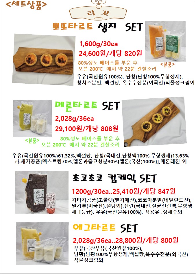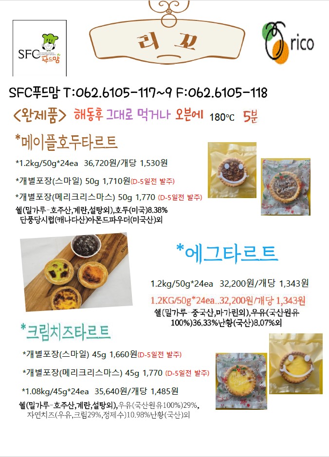 ***SFC푸드맘 리꼬(마시멜로크로와상,타르트,쉘/도우) 12월 단가표/개별포장추가***