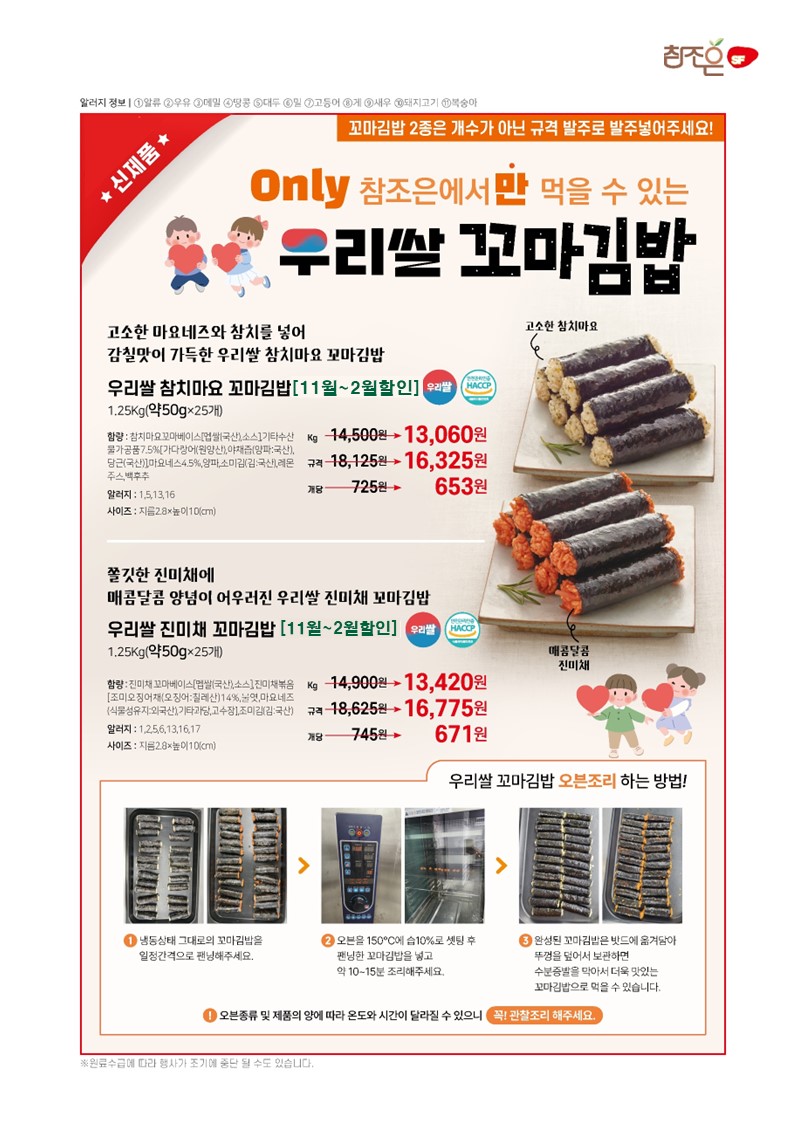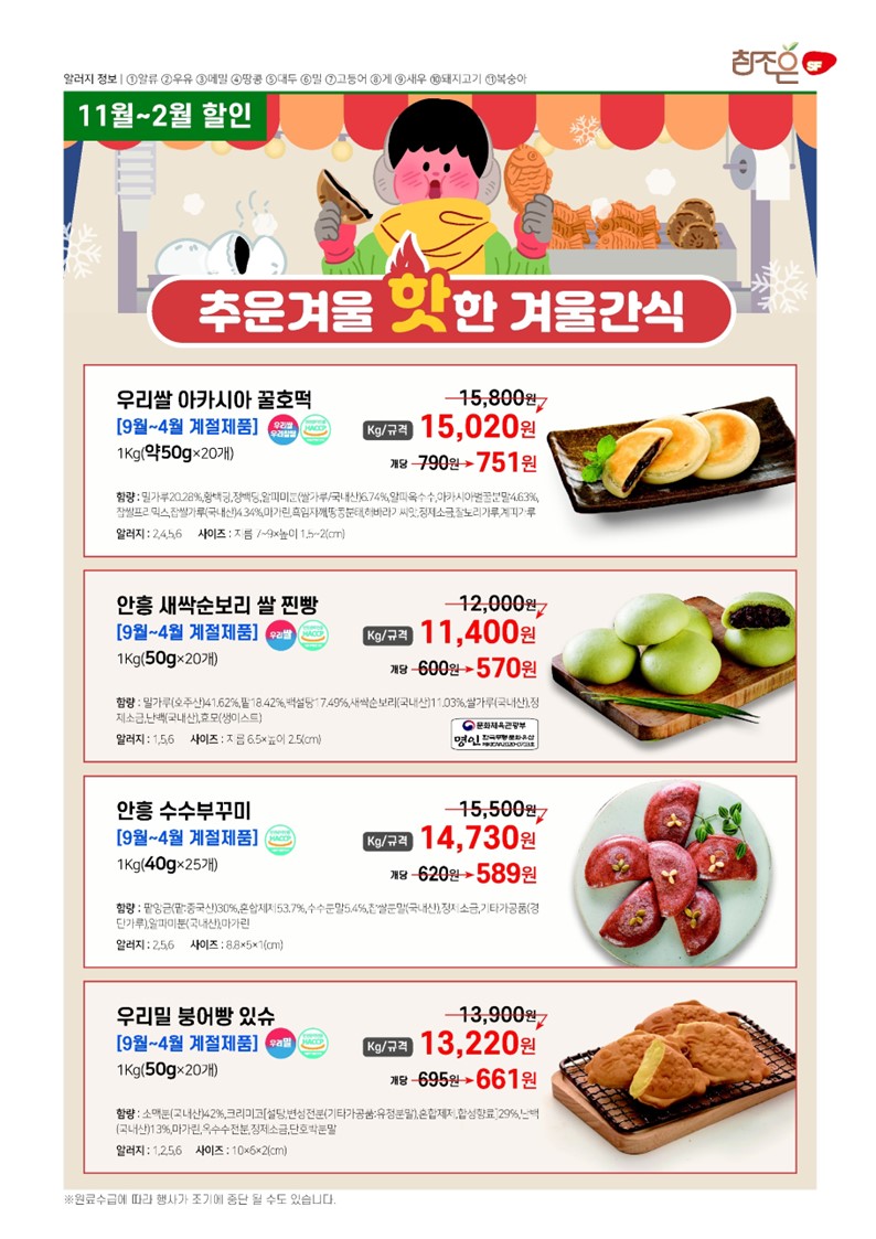 ♠참조은♠[2026년 1~2월 단가표](밀크초코볼케익,프리미엄자숙꼬마전복,세줄옹떡이,우리쌀꼬마김밥,크리미머쉬룸포타쥬,통큰고구마튀김,감탄케익,무안사랑돈안심카츠,우리쌀크런치 오징어 꿔바로우,우리쌀크런치명태까스,짬뽕군만두.오리지널큐스테이크,la갈비맛큐브스테이크,통치즈가스, 통큰더블함박,수랏간돌돌떡말이,수랏간돼지갈비후라이드,바삭베이크윙봉콤비,수랏간간장돼지불고기,수