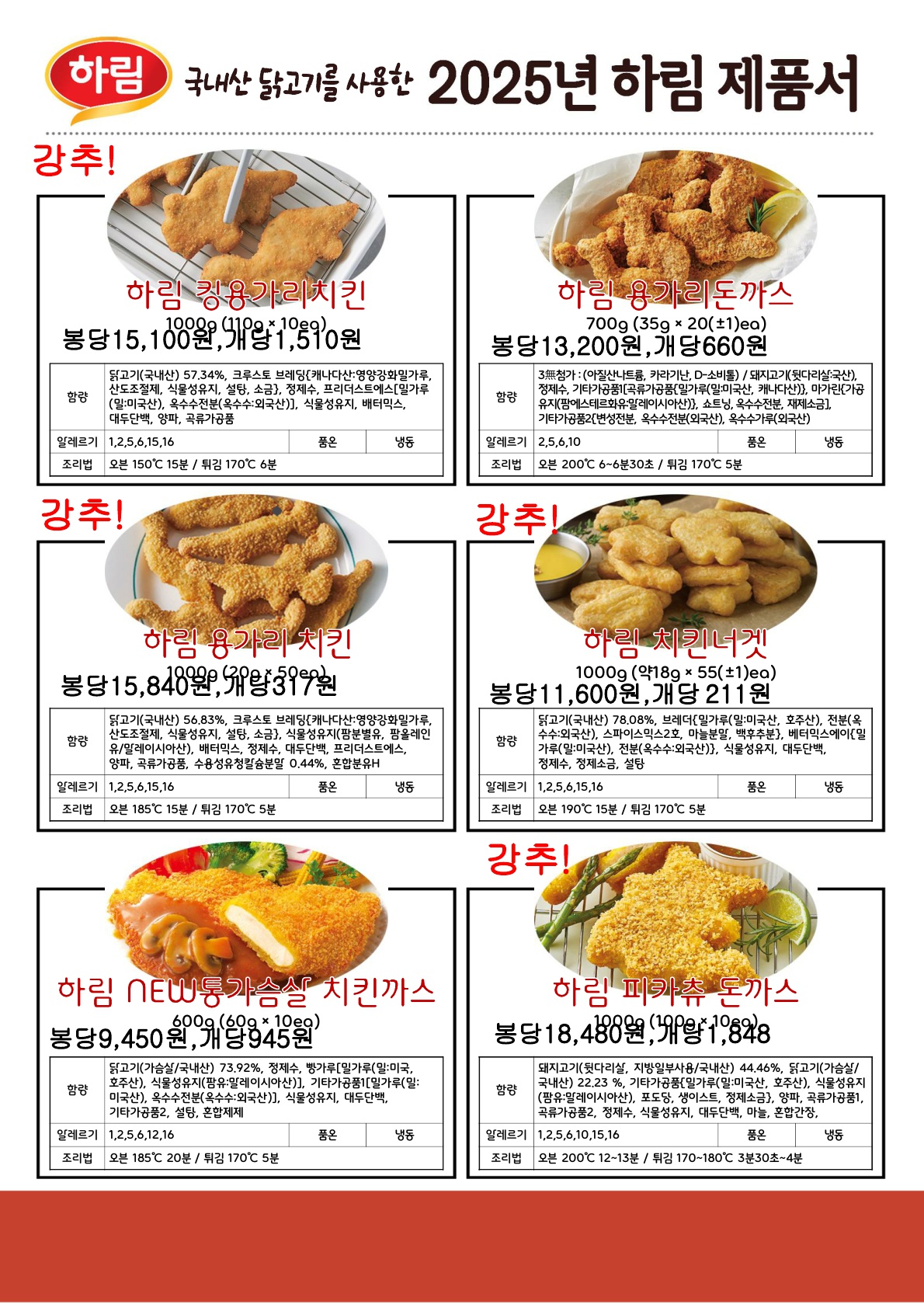 ▶수연푸드▶하림육가공26년1~2월행사단가입니다★샘플문의는 언제든★전품목 20kg이상소스증정(구워먹는 치즈치킨덤플링까스,시카고피…