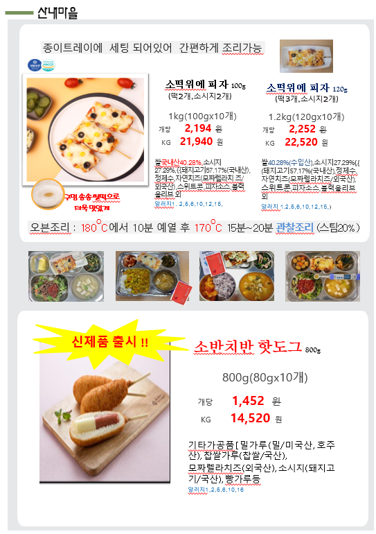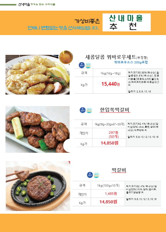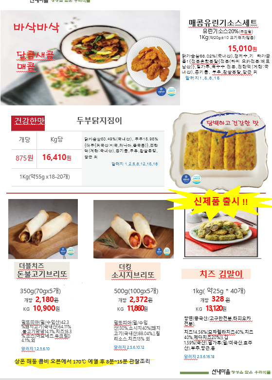 ♥♥송곡푸드♥♥ 산내마을 (국밥,닭꼬치,유린기,돈까스,떡갈비,브리또등등) 1~2월 단가표