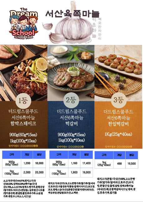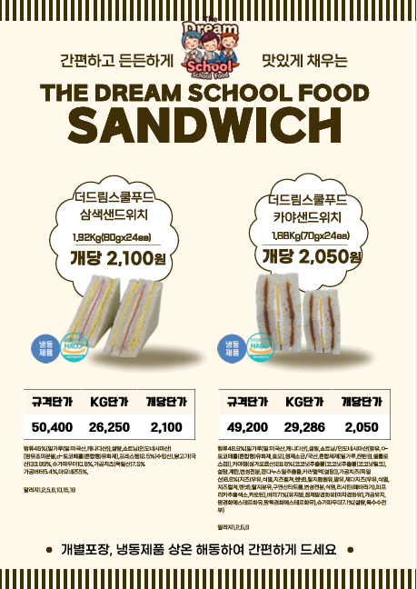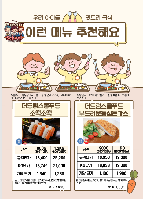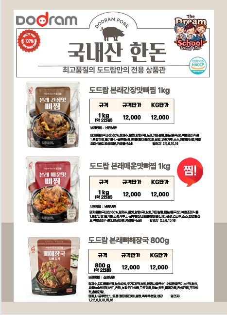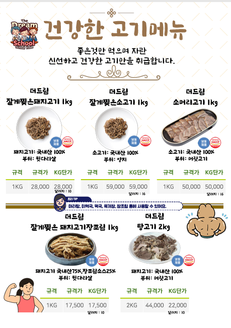 ♣한맥푸드♣ 더드림스쿨푸드 (찢은고기.국밥.오리고기,돈까스.소떡소떡,샌드위치.햄버거.떡갈비.마카롱등) 3월단가표