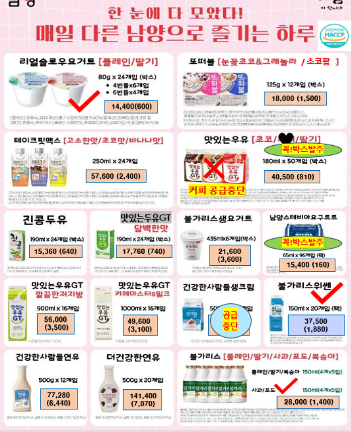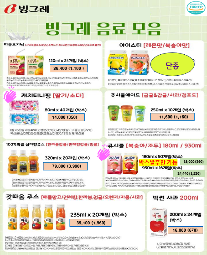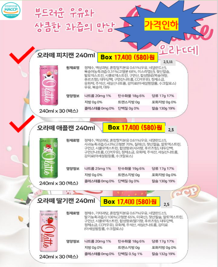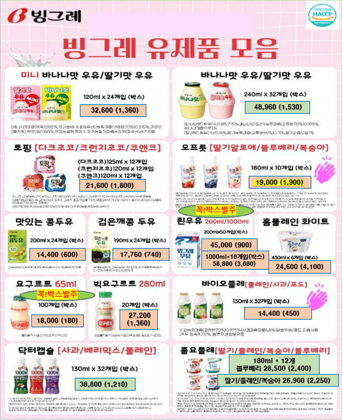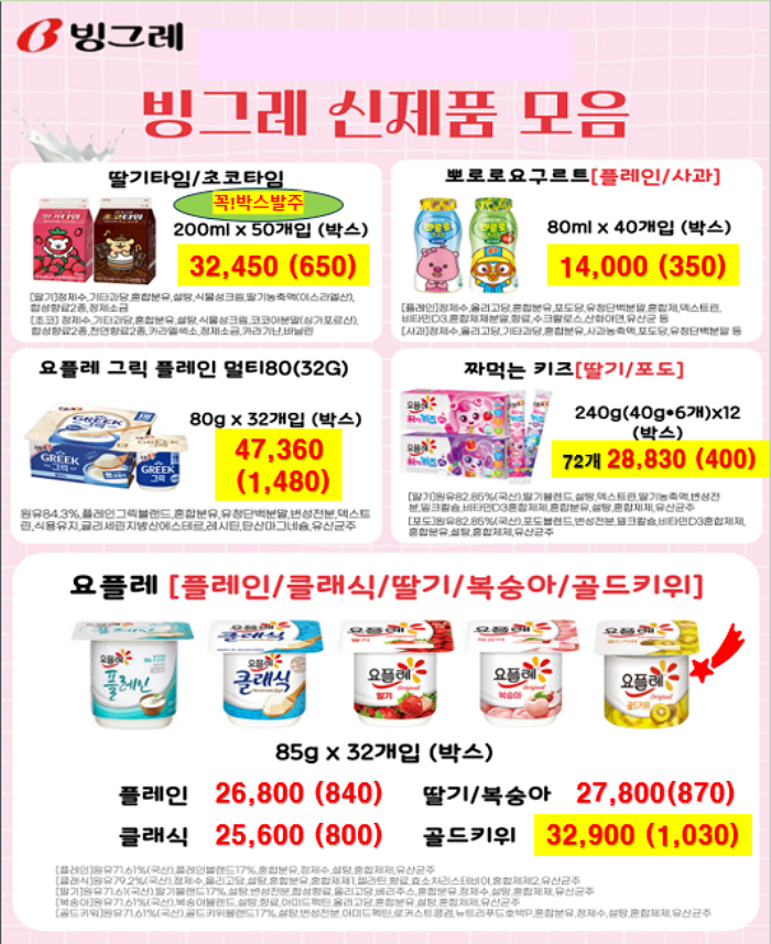서울우유, 남양유업, 빙그레 , 진짜사과당근주스, 크로플 ,,,