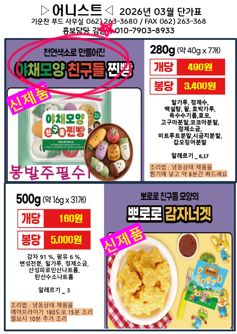 기운찬❇️어니스트❇️26년03월단가표 인기간식뽀로로3종츄러스!!잔망루피약과도넛!!아기자기야채찐빵!!잔망루피오뚝이캔디!!아크릴홀…