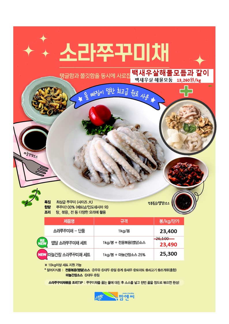 참조은~♠팜앤씨♠[2026년3월 단가표](만들어먹는 수제광어생선까스,감자바사삭통오징어링튀김,어부의선택순살동태알탕, 올리버페퍼연어스테이크 스노우어니언크림세트,애플민트참조기굴비,문어혼합해물모둠, 백새우살해물모둠,국내산대하새우살,만들어먹는국내산대하새우살레몬크림세트,전남산특삼치포, 자숙전복다이스,감자바사삭명태까스,숯불향이븐연어스테이크,맵달소라쭈꾸미세트,바사삭순살깐