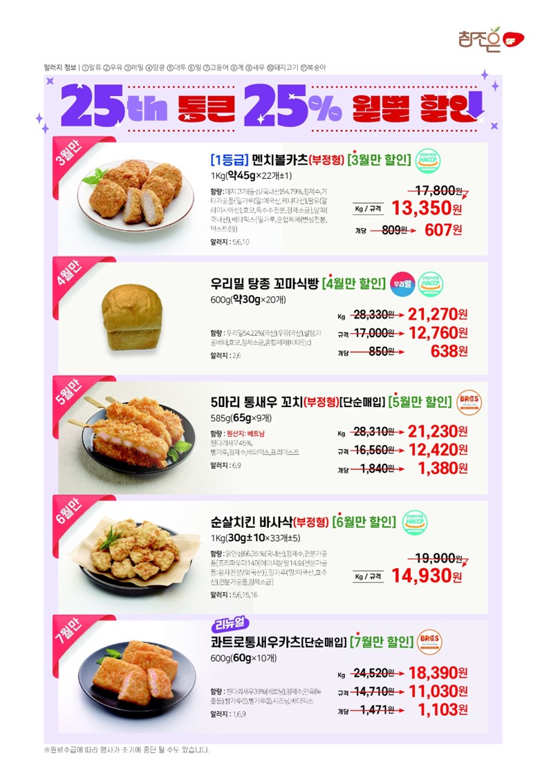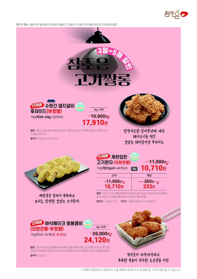♠참조은♠[2025년 5월 단가표](la갈비맛큐브스테이크,통치즈가스,통큰더블함박,수랏간돌돌떡말이,수랏간돼지갈비후라이드,계란입힌고기완자,바삭베이크윙봉콤비,추억의카스테라핫도그,초코앤슈크림파이,제로매실, 수랏간간장돼지불고기,수랏간고추장불고기,마음이가오곡치즈롤까스,휘뚜루마뚜루돈까스,오곡고구마스트링롤까스,수랏간더블함박,순살크런치생선까스,한끼만두,주먹밥,스카치에