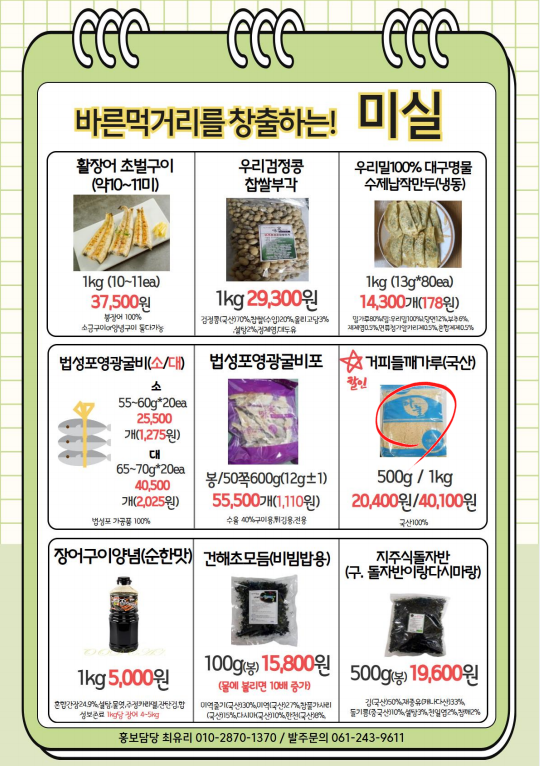 [동원에프엔에프] 미실 03월 단가표