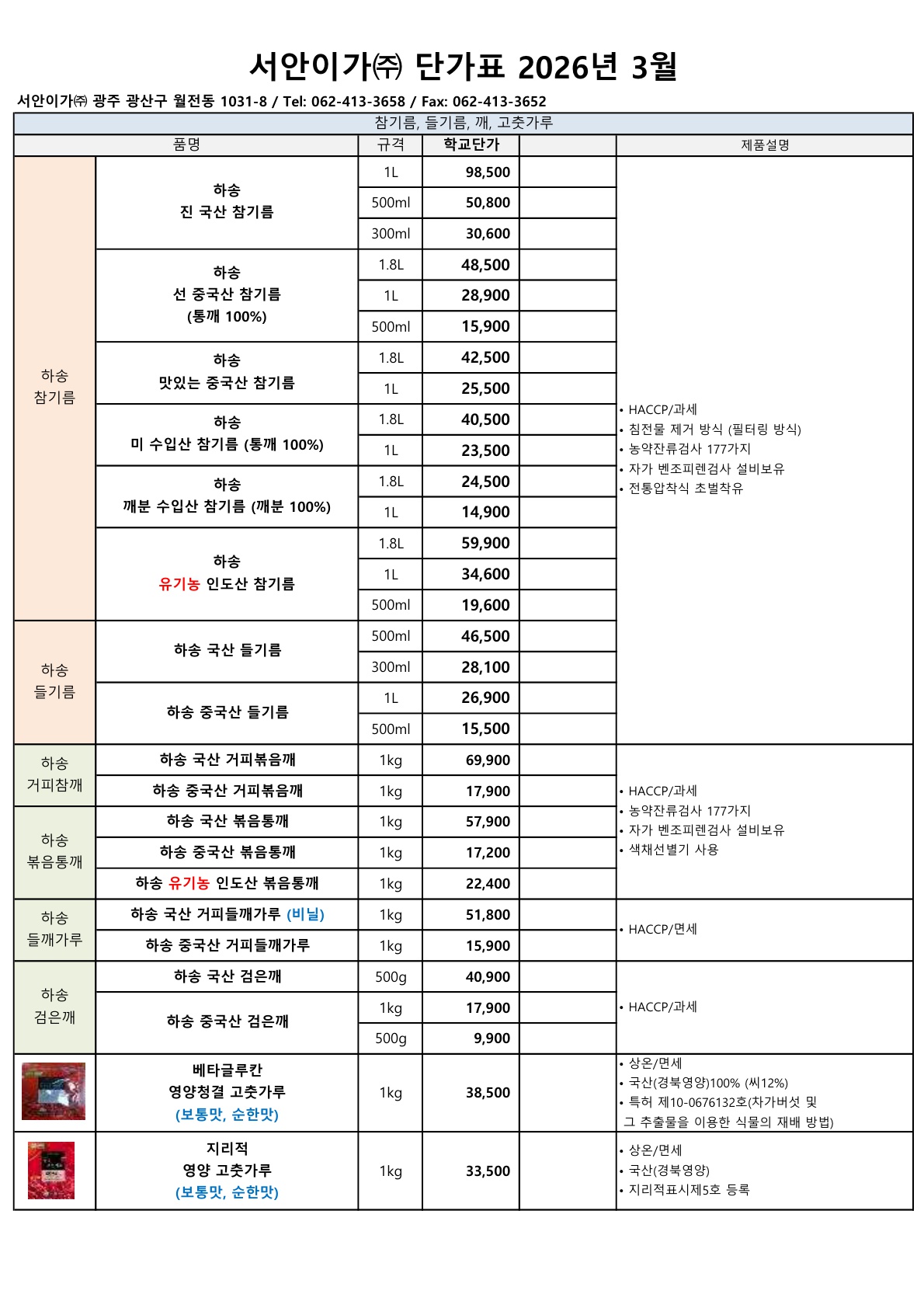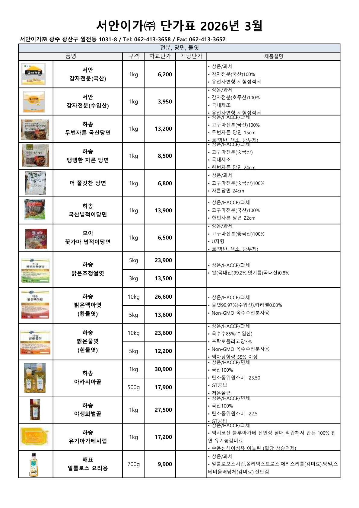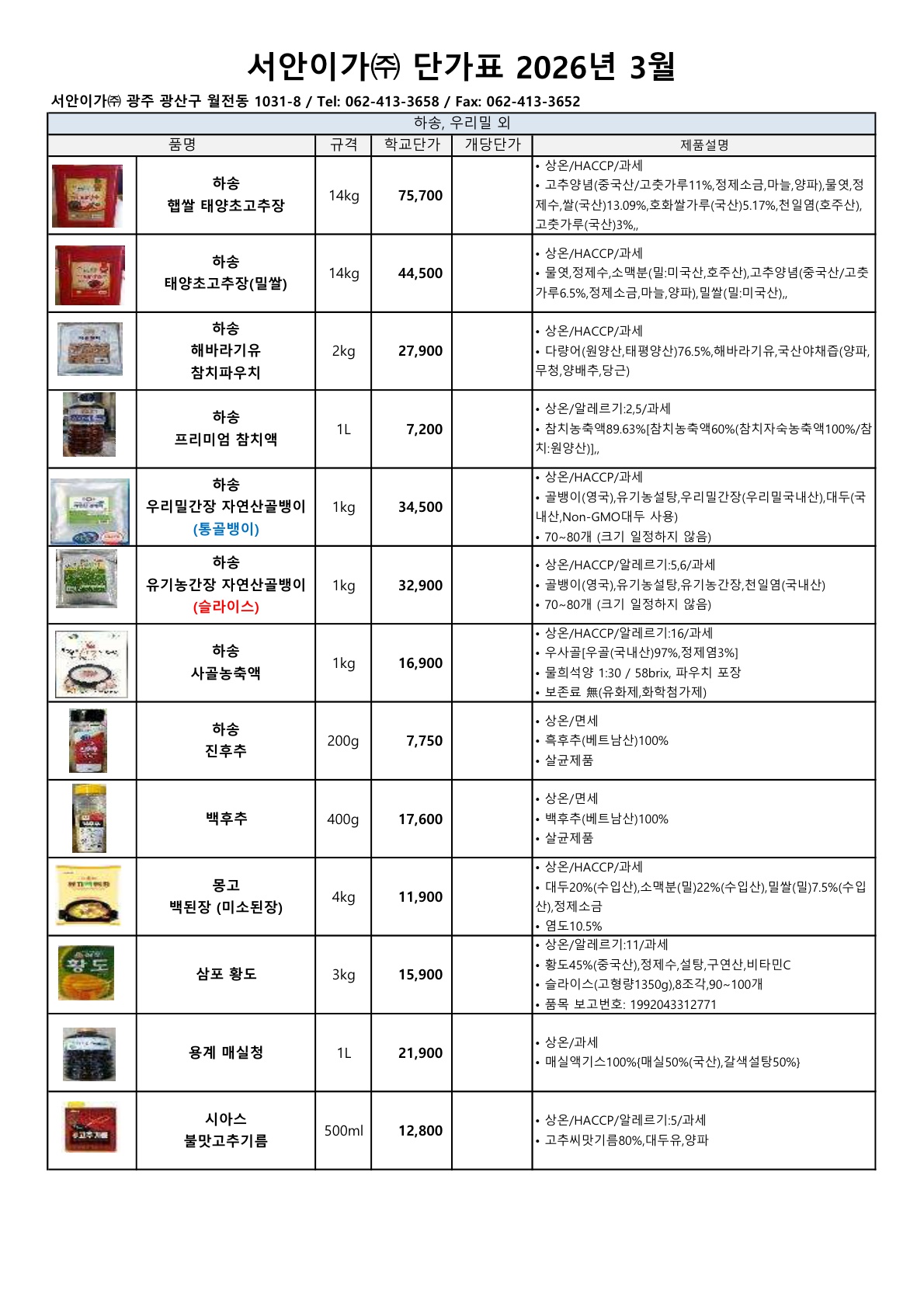 ▶▷ 서안이가 3월 (하송, 사조대림) 단가표