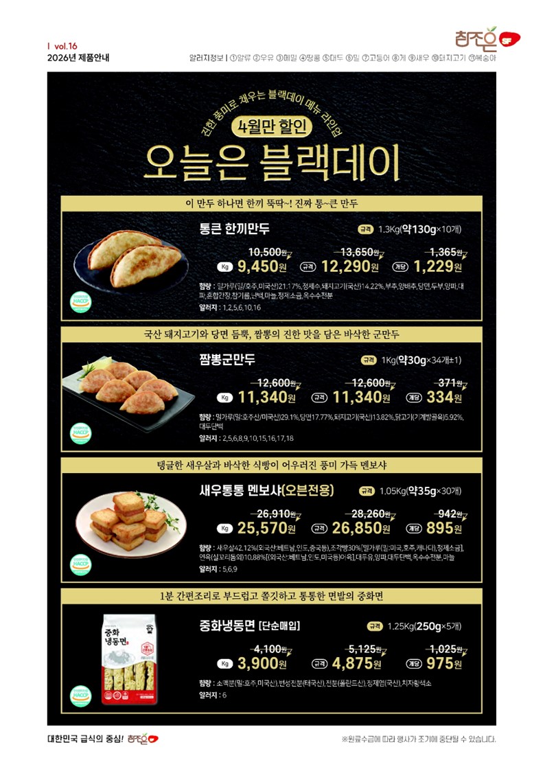 통큰한끼만두,짬뽕군만두,새우통통멘보샤,중화 냉동면,돈마호크도