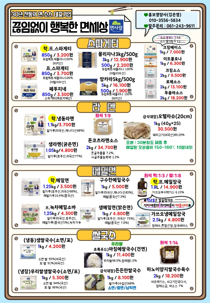 ✿✿[동원에프엔에프] 면사랑 3월 단가표✿✿
