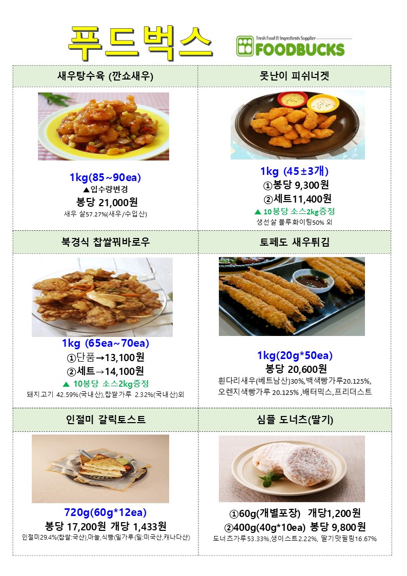 ★★★★ 엘푸드 03월 사조오양 제품 학교 단가표 ★★★★