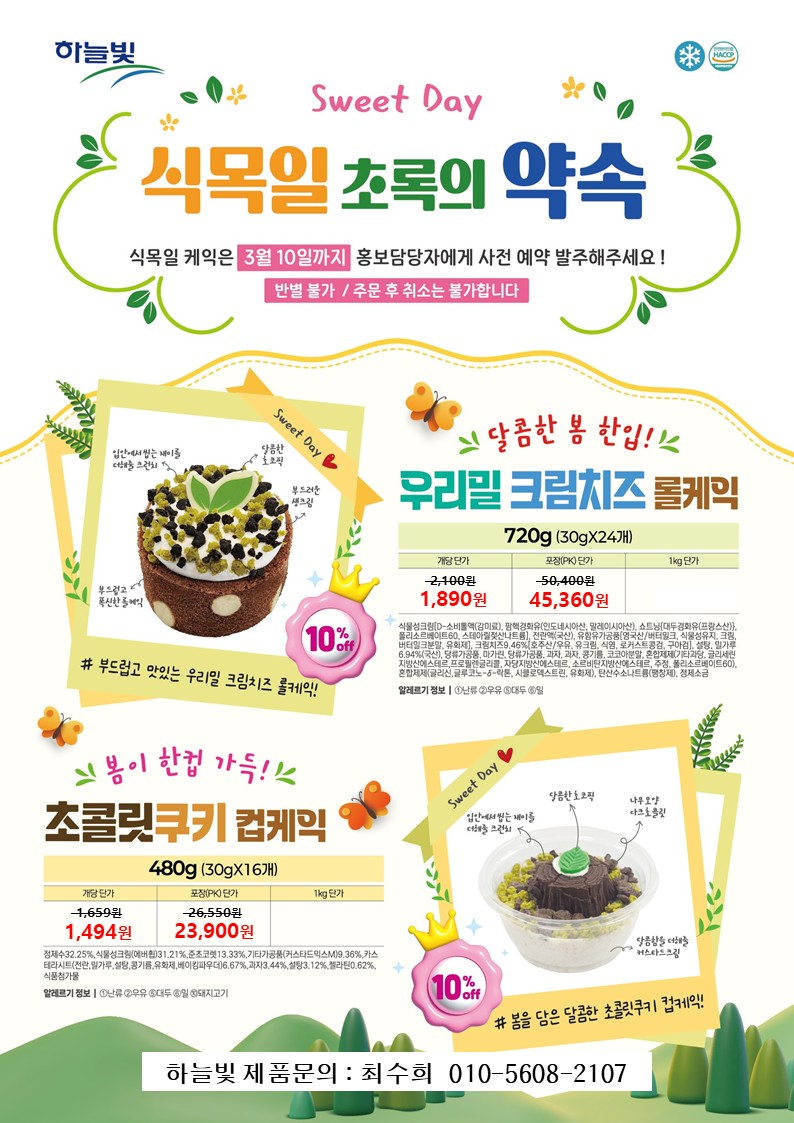 ☆우리밀 크림 치즈롤케익 (선발주) (30g) 개당 1,890원