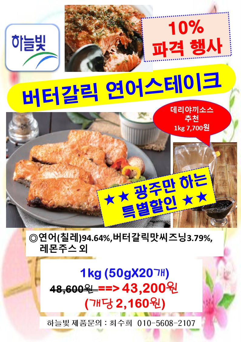 ☆ 버터 갈릭 연어스테이크 1kg(50g×20개) 할인가 => 개당 2,160원