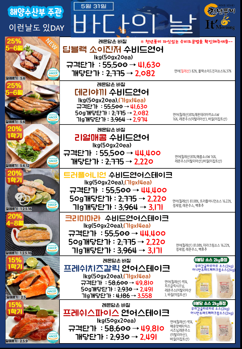 ◈≪≪도래샘푸드≫≫❤️▶[천년풍미/잇모닝]◀❤️5월 전체단가표(특별이벤트 선발주-스승의날(러브라즈베리쥬빌레),어린이날(레알망고젤라또),단오(무주수리취꿀떡),바다의날,젤라또,전복낙지영양솥밥