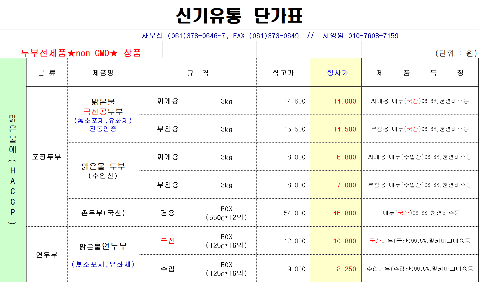 신기유통 4월 맑은물에, 오성, 담양한과, 삼육두유