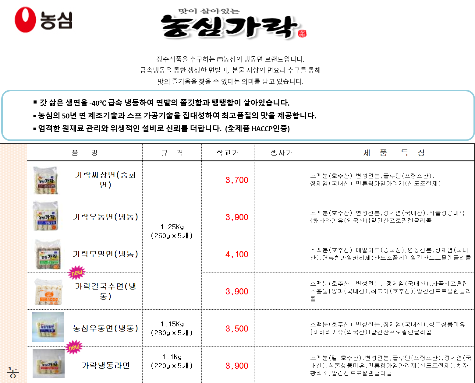▶▷ 서안이가 4월 (하송, 사조대림) 단가표