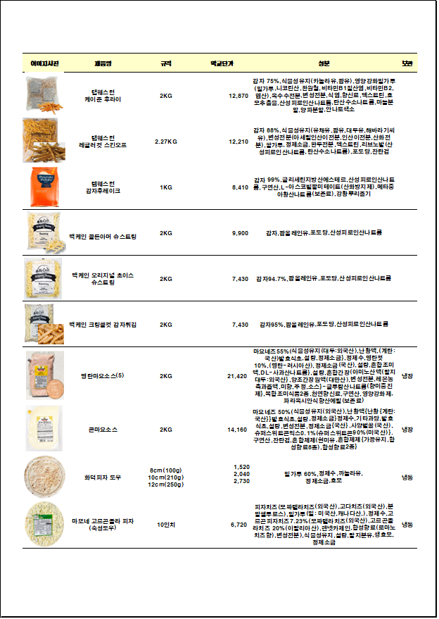 ▶한맥푸드◀ 코다노(치즈,올리브유,돈까스,소스,.피자도우) 4월 단가입니다
