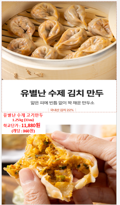 ▶한맥푸드◀ 유별난 (수제만두,왕만두,메밀만두,전병,군만두) 4월 단가입니다