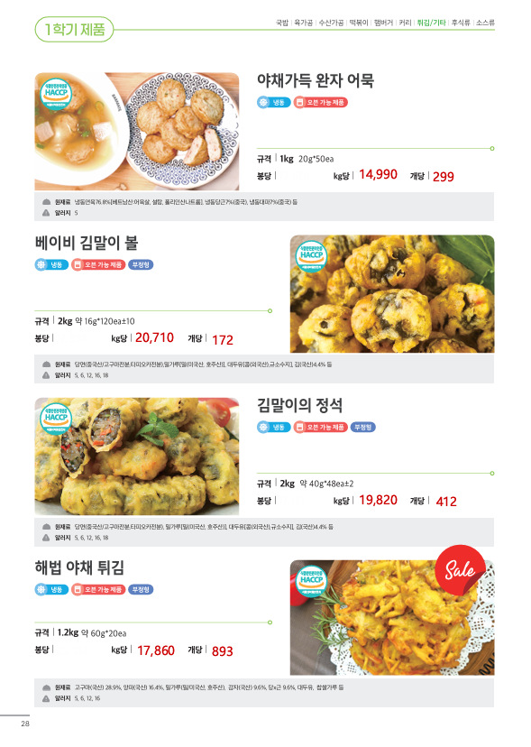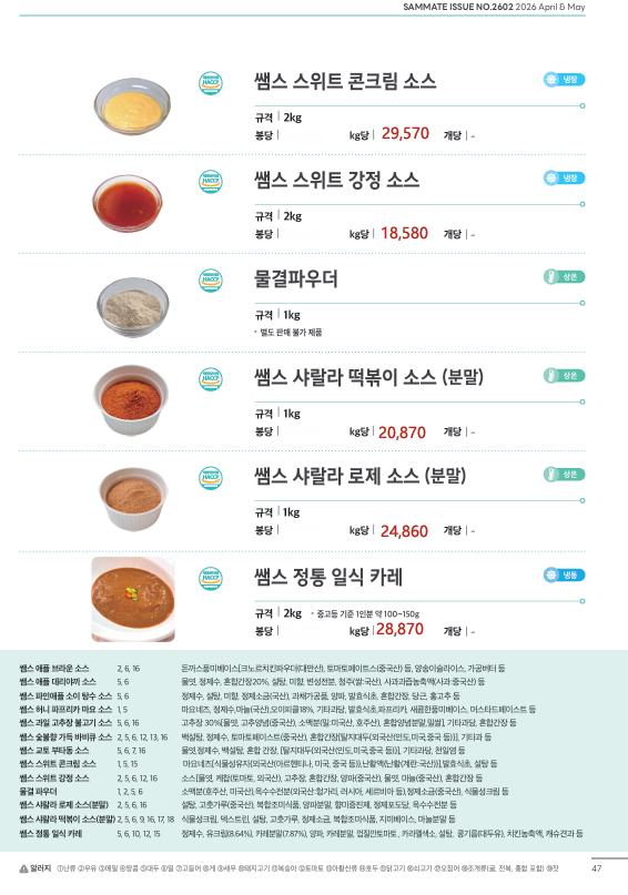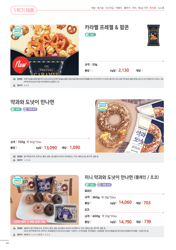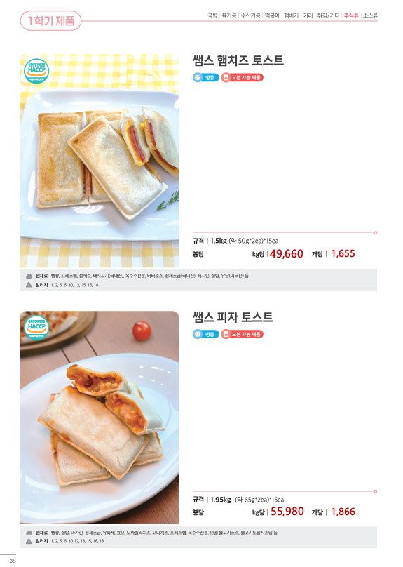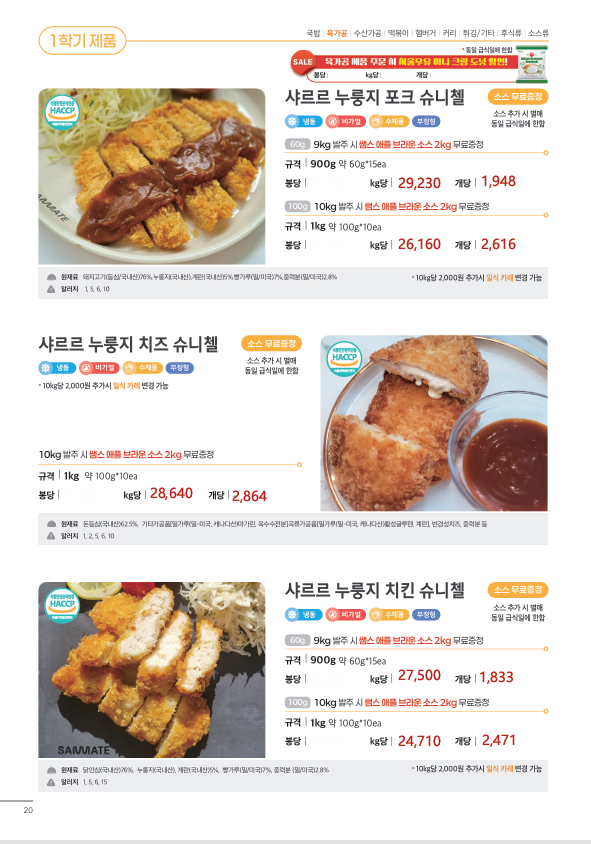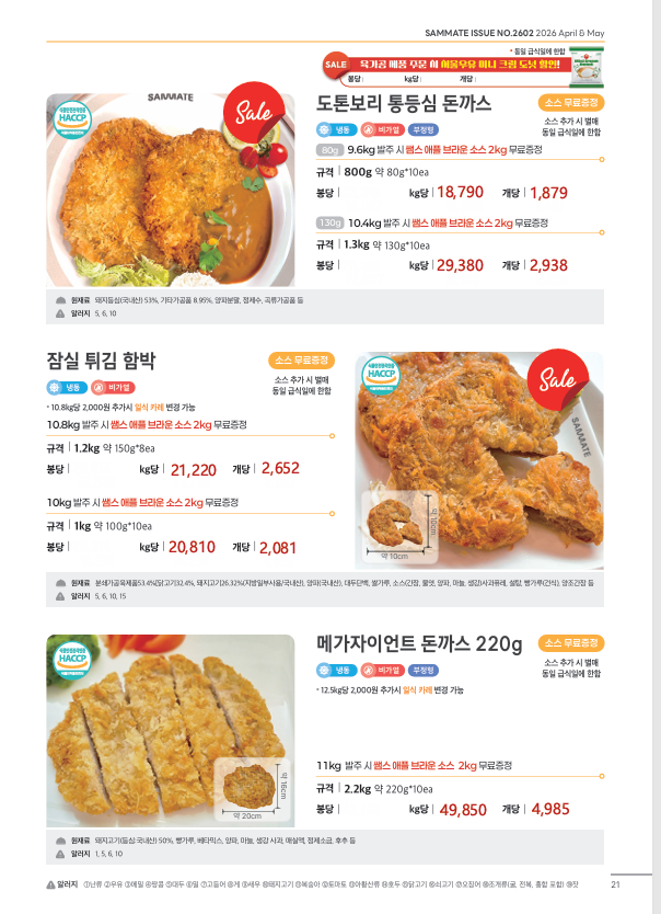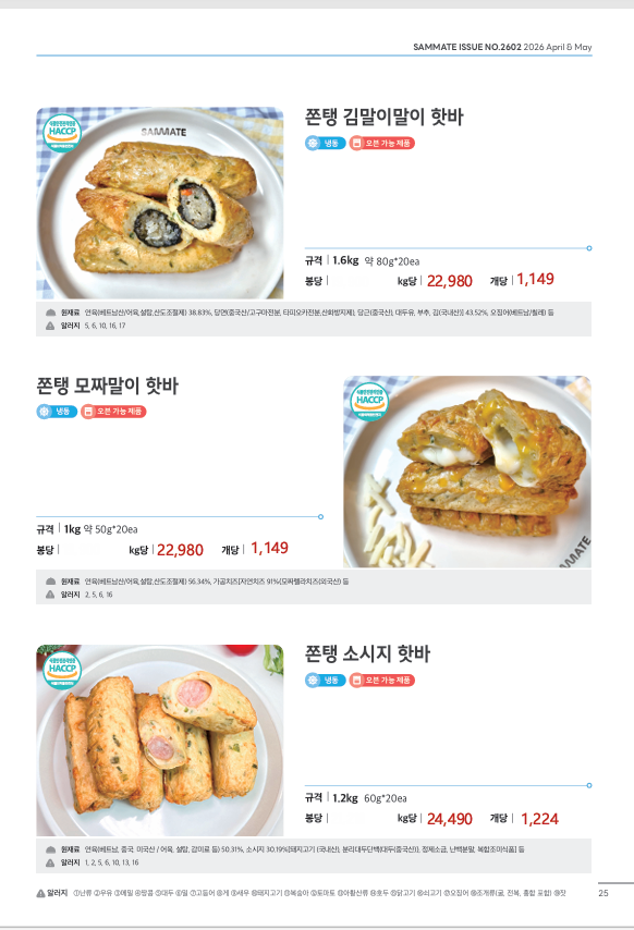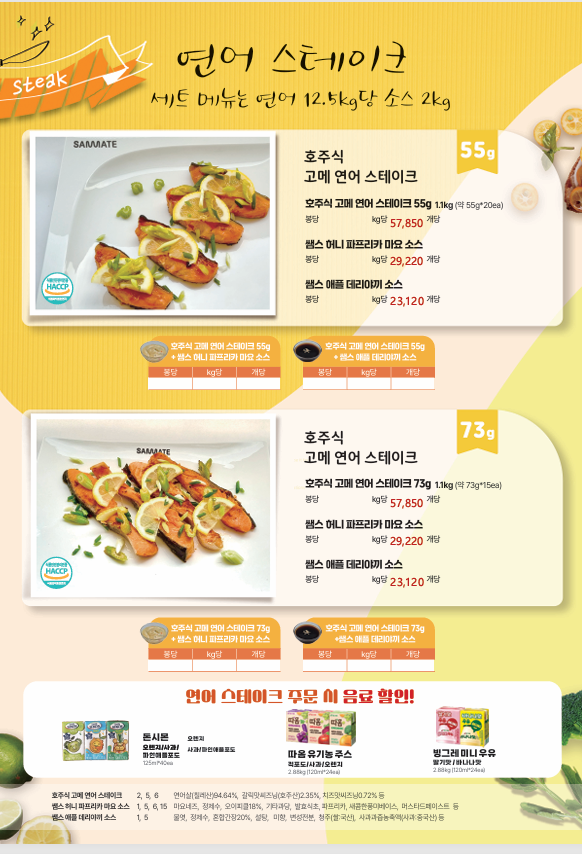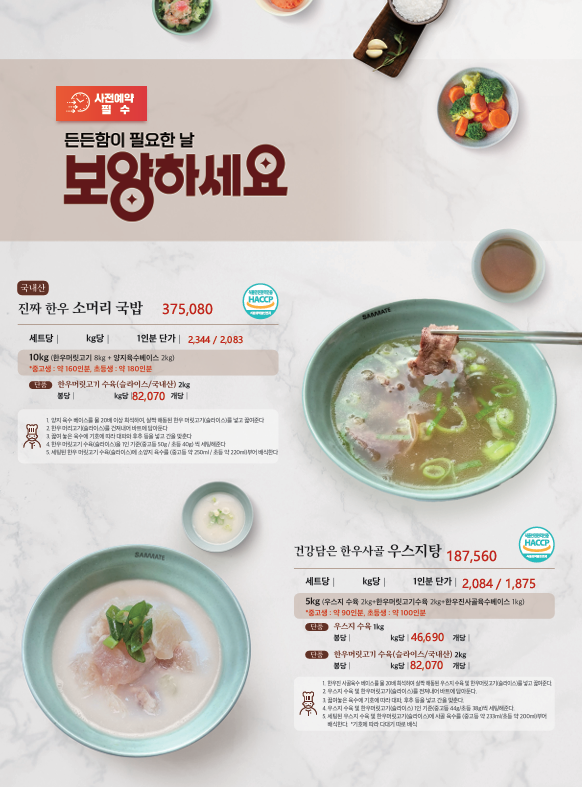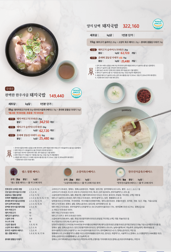 ▶한맥푸드◀ 쌤메이트(국밥,햄버거,튀김류,핫바,연어스테이크,컵케익,샌드위치)4월 단가입니다