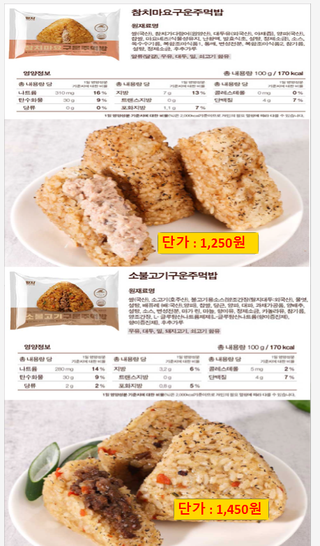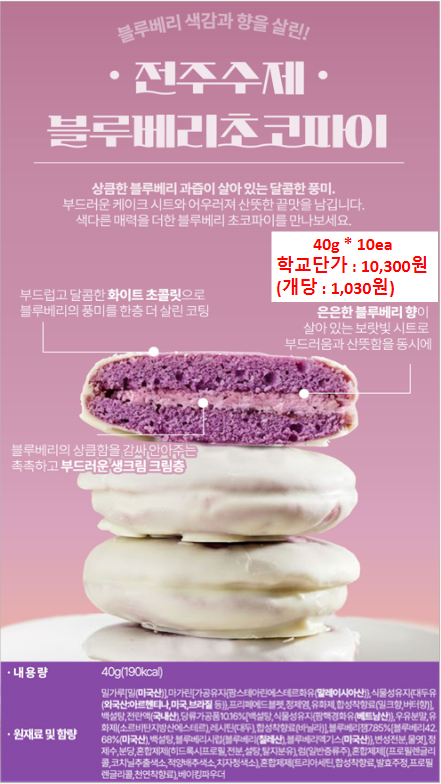 ※송곡푸드※ 세진푸드(오리지널,바나나,블루베리초코파이,회오리감자,벌집고구마,구운주먹밥,등등) 4월 단가표입니다