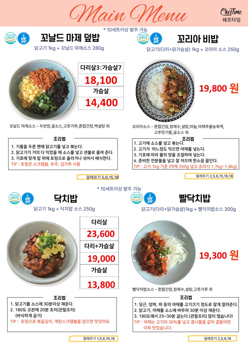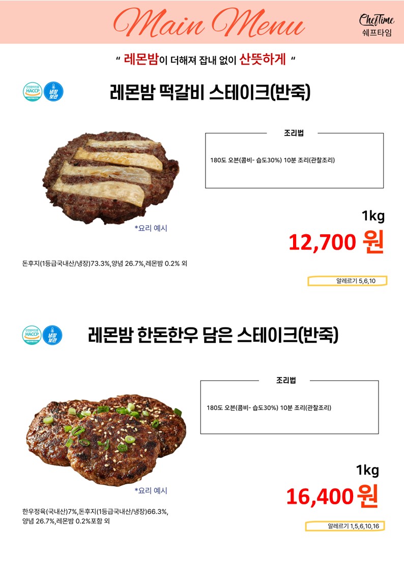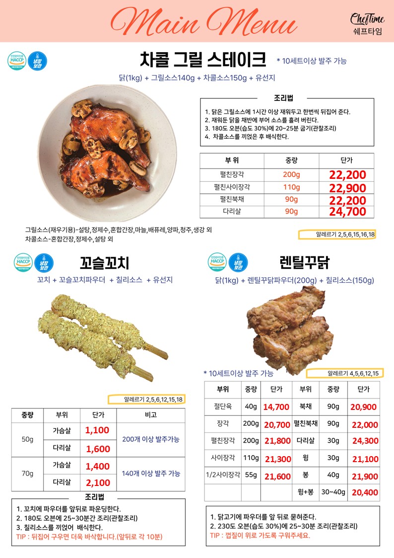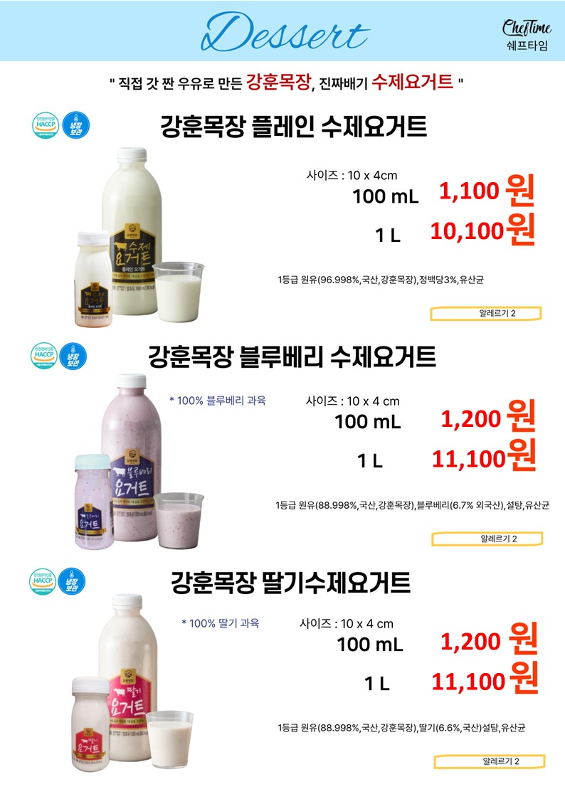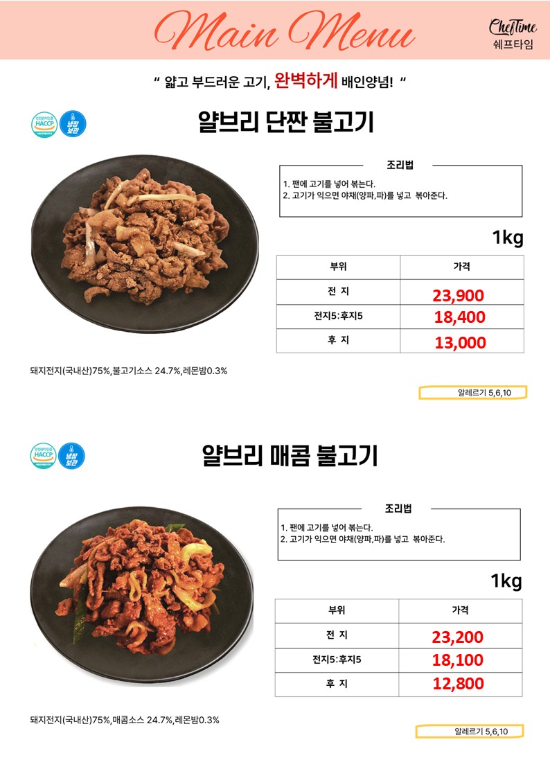 ★★★★ 엘푸드 04월 쉐프타임 학교 단가표 ★★★★