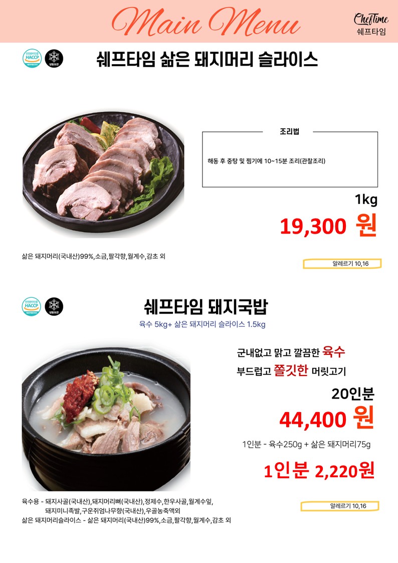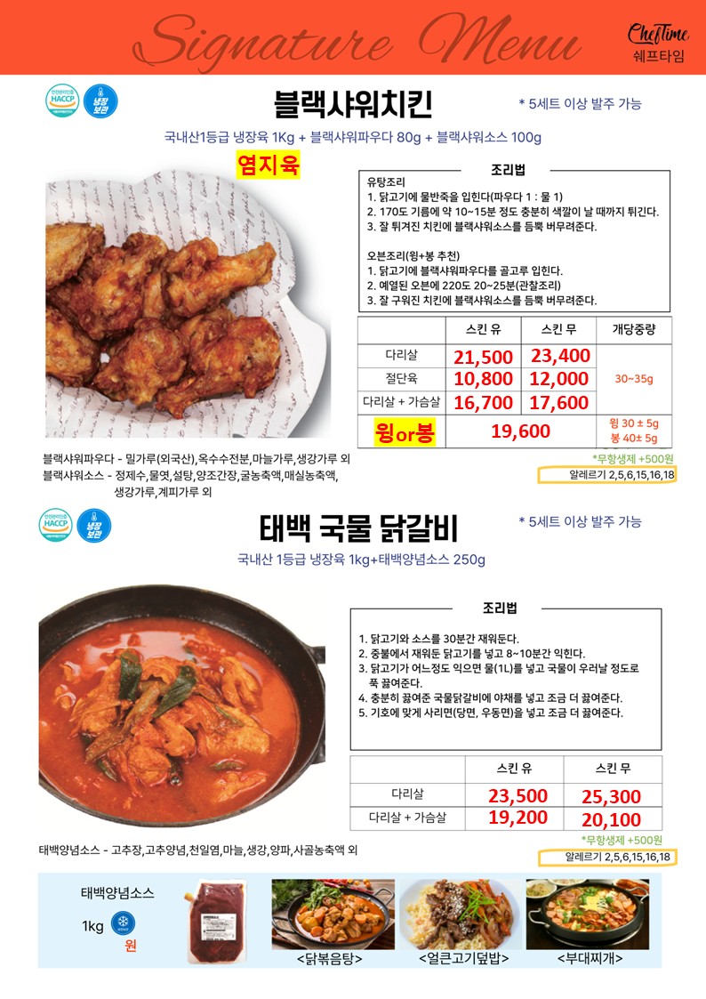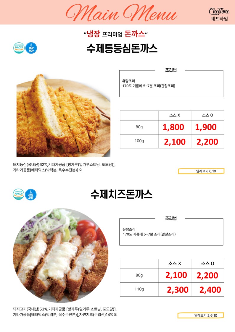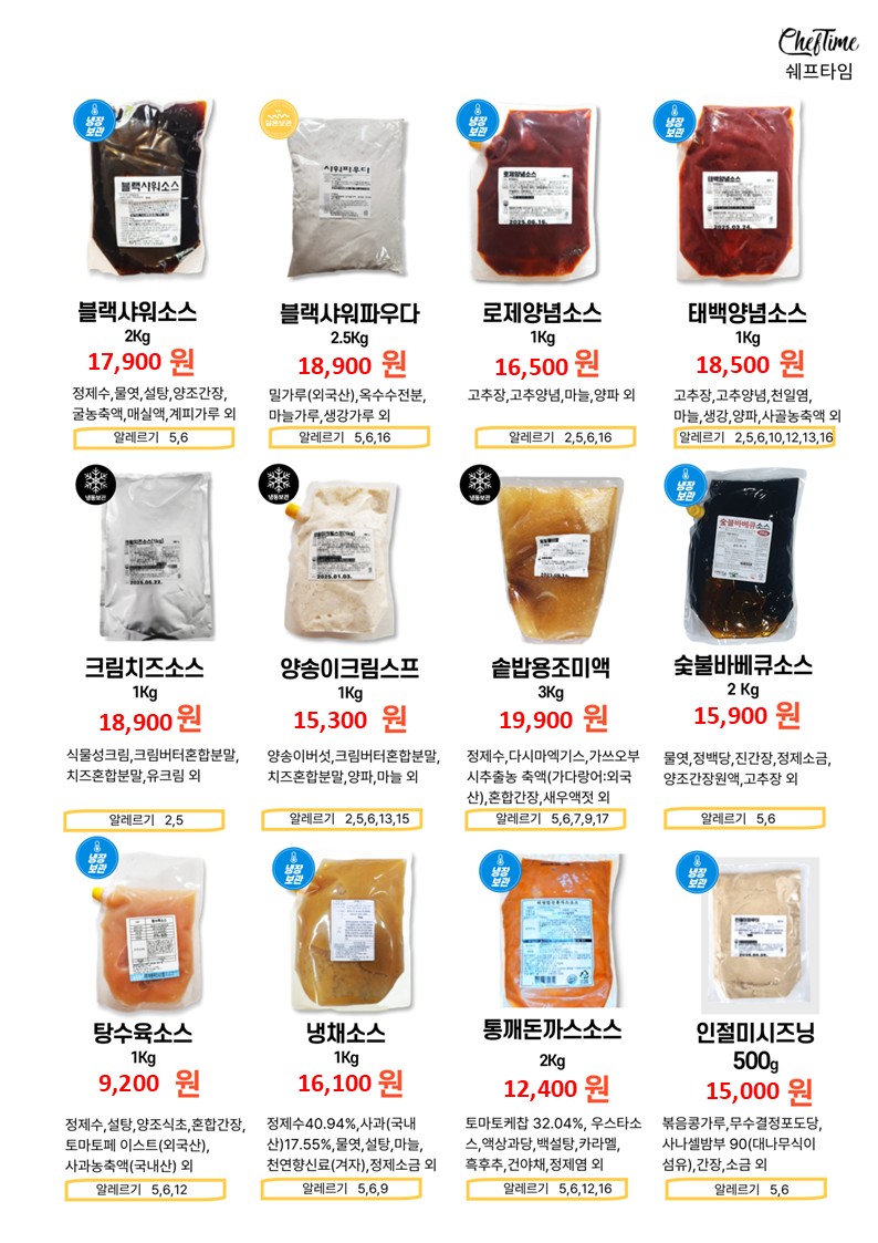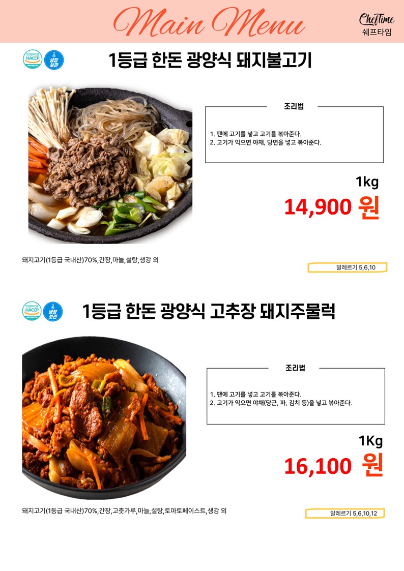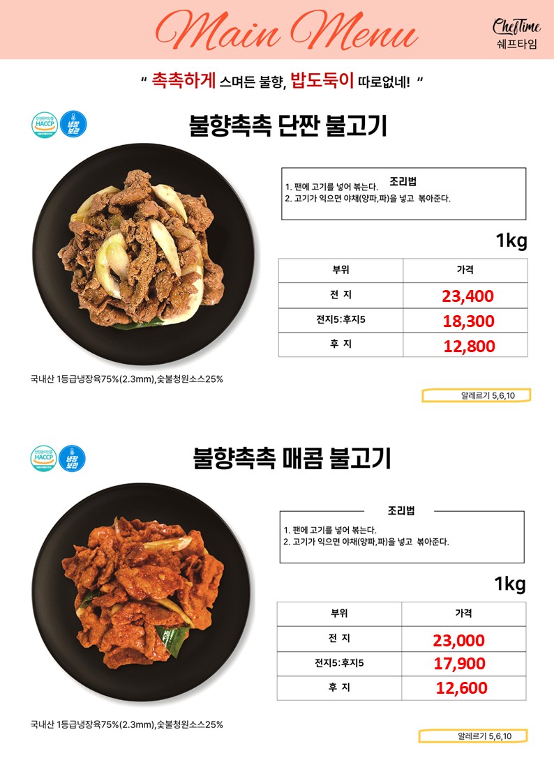 ★★★★ 엘푸드 04월 쉐프타임 학교 단가표 ★★★★