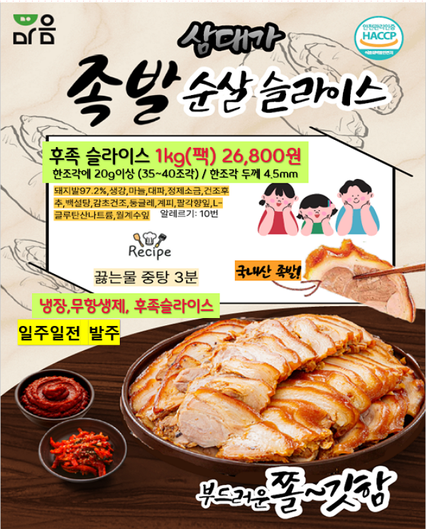 * 돼지고기캠핑꼬치구이, 순대국밥, 샌드위치, 케익, 돈마호크, 전복, 오리슬라이스류는