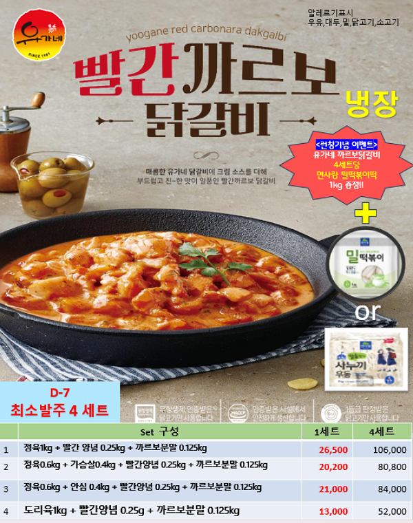 ♥♥♥ 푸드마일 유가네닭갈비 4월 단가표 입니다 ♥♥♥
