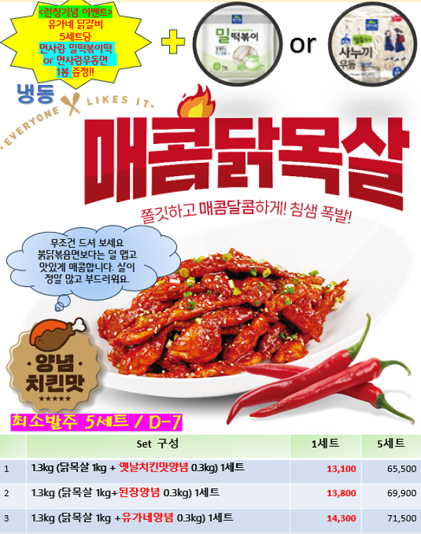 규격 발주시마다 면사랑 떡볶이 또는 면사랑 우동면 중
