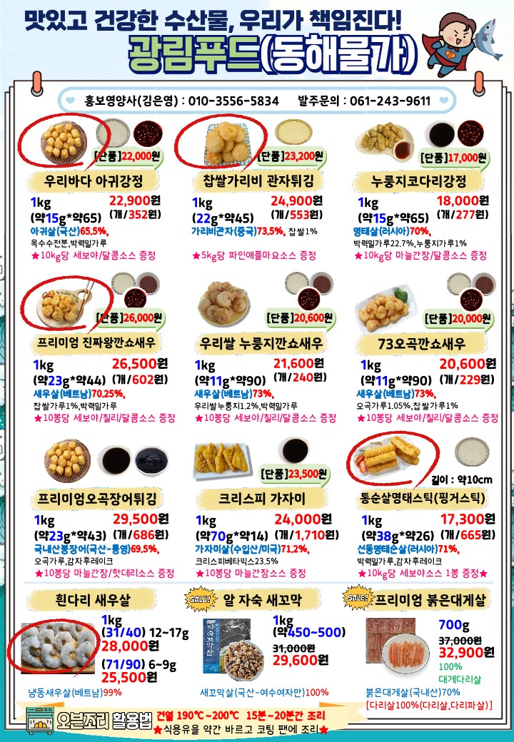 ✿✿[동원에프엔에프] 광림푸드(동해물가)4월 단가표✿✿
