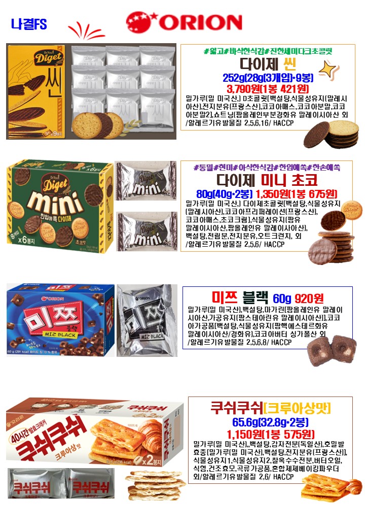 ⊙⊙나결FS 4월 총 단가표 1 ⊙⊙"푸드스토리,싱싱플러스,제이브라운,오리온,루토사,명인쌀조청,우리밀농협,명랑핫도그,하이포크(가족사랑)"